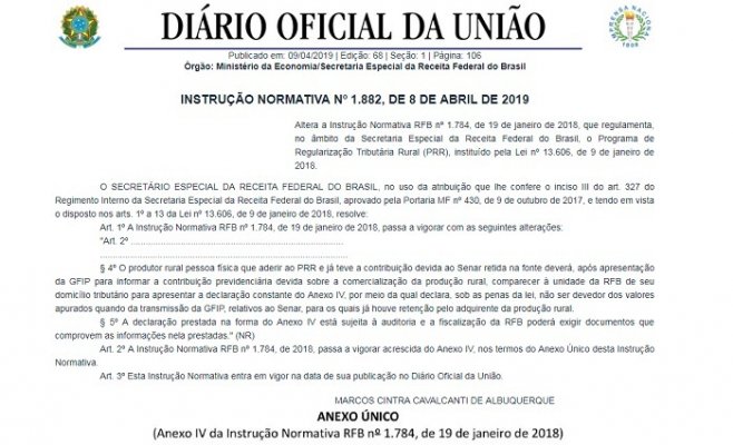 A Secretaria da Receita Federal do Brasil (RFB) atendeu a uma demanda da Federação da Agricultura e Pecuária do Estado de Mato Grosso (Famato) e Confederação da Agricultura e Pecuária do Brasil (CNA) e regulamentou a obtenção de certidão negativa para o produtor rural pessoa física que aderiu ao Programa de Regularização Tributária (PRR) do Funrural. A decisão está na Instruç...