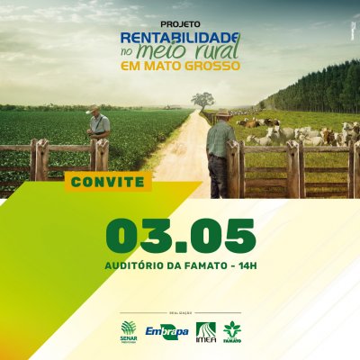 O Projeto "Rentabilidade no Meio Rural – Desafios da lucratividade para a próxima safra" será apresentado pelo Instituto Mato-grossense de Economia Agropecuária (Imea) na sexta-feira (04/05), a partir das 13h30, para produtores rurais, técnicos, consultores, pesquisadores, empresas do agronegócio, estudantes e imprensa, em um event...