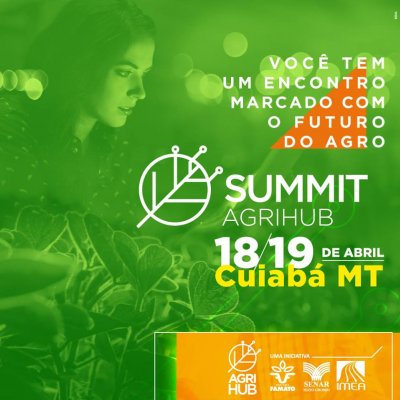 Nos dias 18 e 19 de abril produtores rurais, investidores, comunidades AgTech, startups e representantes de universidades e institutos de pesquisa participarão do encontro Summit AgriHub 2018 – uma iniciativa da Famato, Senar-MT e Imea. O encontro será no Cenarium Rural, em Cuiabá. Será o primeiro grande evento do programa AgriHub, a rede de inovaç...