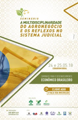 Estão abertas as inscrições para o Seminário “A Multidisciplinaridade do Agronegócio e os Reflexos no Sistema Judicial” que será realizado pela Federação da Agricultura e Pecuária de Mato Grosso (Famato), Serviço Nacional de Aprendizagem Rural (Senar-MT) e Instituto Brasileiro de Estudos Jurídicos e Multidisc...
