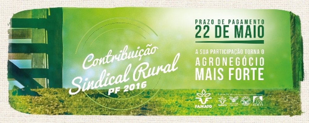 Faltam 12 dias para o vencimento do prazo para pagamento da Contribuição Sindical Rural – pessoa física. Os produtores rurais de Mato Grosso têm até o dia 22 de maio para efetuar o recolhimento sem multas. A Federação da Agricultura e Pecuária de Mato Grosso (Famato) alerta que a não quitação da t...