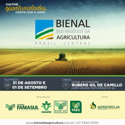 Evento acontece nos dias 31 de agosto e 1º de setembro, em Campo Grande (MS). Temas como competitividade, sustentabilidade e inovação tecnológica devem dominar debates Discutir os gargalos e as questões estratégicas do setor agropecuário na região Centro-Oeste, este é o objetivo da terceira edição da Bienal dos Ne...