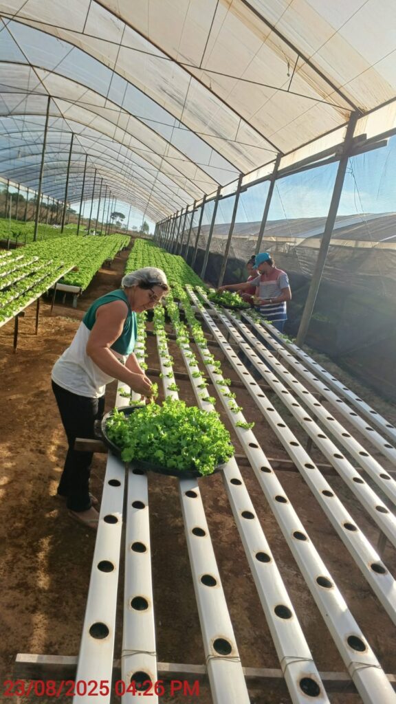 Criada na roça, Glaci aprendeu desde cedo que o campo exige disciplina, paciência e cuidado. Mãe de quatro filhas, ela mantém a produção de frutas como acerola, tamarindo, manga, abacate e limão, comercializadas na própria região. Mas é na hidroponia (sistema de cultivo em que as plantas crescem sem solo, com nutrientes diluídos em água) de alface que está sua principal fonte de sustento.